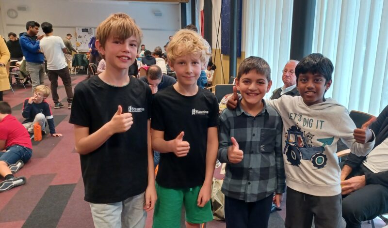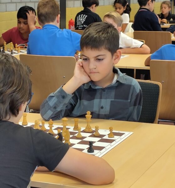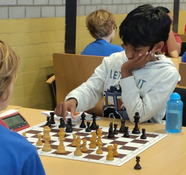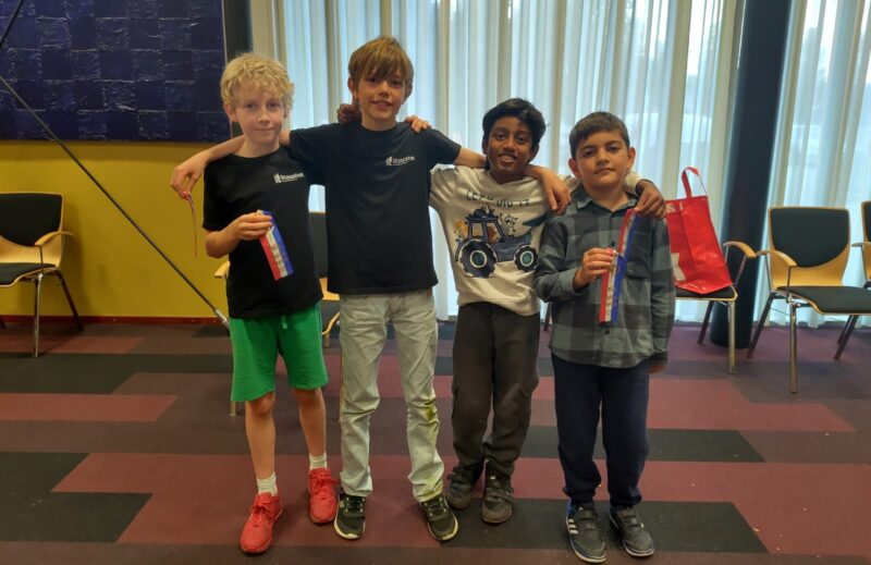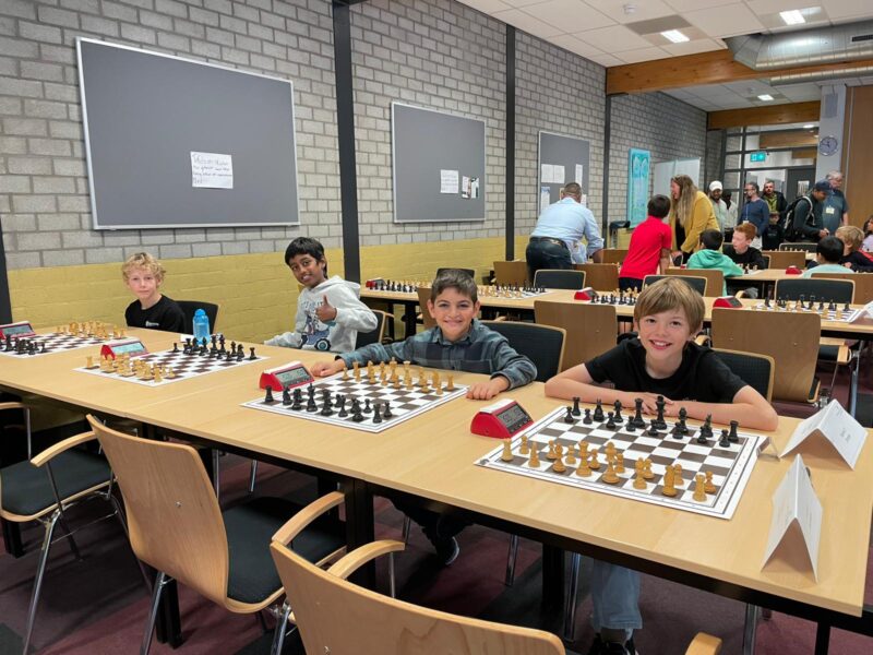 Gisteren traden we met 4 zeer gemotiveerde spelers aan voor de halve finale van het NK-E (kinderen geboren in of na 2015). Olav, Mrityunjay (Jay), Edin en Nolan wisten hun enthousiasme bovendien om te zetten in prima schaakpartijen.