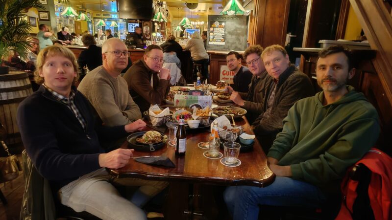 Wat rest is (weer) een nipte nederlaag en een foto van het gezellige etentje na de wedstrijd (Bram was even naar het toilet). Tenslotte nog de opmerking dat ondanks de 3 nederlagen van de Staunton teams alle invallers wel een resultaat haalden en dat is altijd leuk. Faruk en Vincent wonnen. Pablo (Staunton 2) en Hylke (Staunton 3) speelden remise.