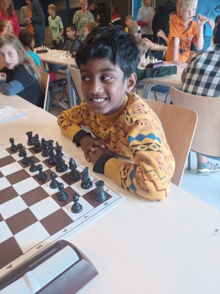 Dhruval speelt steeds beter, maar vandaag zat het hem niet mee. Hij wist jammer genoeg geen partij te winnen of remise te houden. Maar klasse dat hij wel heeft meegedaan, want de ervaring die je op dit soort toernooien opdoet, is heel waardevol voor je schaakontwikkeling.