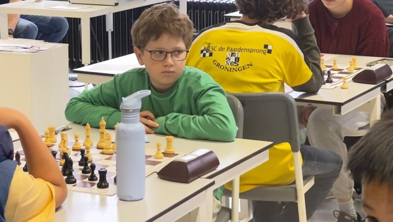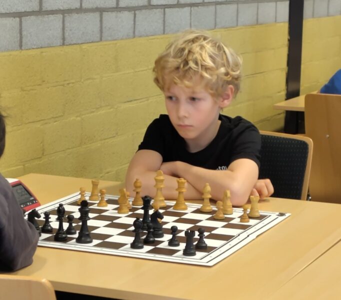 Daan begon het toernooi als 1e geplaatst. Maar op deze leeftijd en met veel aanstormend talent dat nóg jonger is, zei dat niet zoveel. Daan begon sterk met 2x winst, maar liep toen tegen een paar nullen aan. Om vervolgens sterk te eindigen en zelfs in de laatste ronde te winnen van de nummer 2 geplaatste Besher! Met 4 uit 7 een keurige plusscore. Niet super, maar wel een prima toernooi.