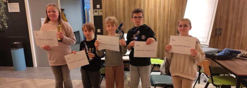 Vandaag waren de Persoonlijke Jeugdkampioenschappen NOSBO D 2026 in Hoogeveen. Nieuw jaar, nieuwe categorieën: de D-categorie is dit jaar voor spelers geboren in 2014 of later. Van ons deden daar Daan, Dhruval, Mrityunjay (Jay) en de broers Olav en Nils mee.
