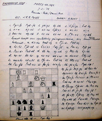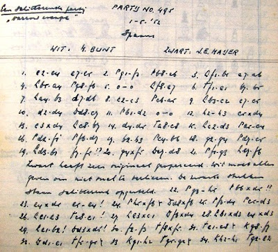 Was deze partij al aardig, zo met het commentaar van beide kanten, nog veel interessanter wordt het als Bunt later (Albert: waarschijnlijk bij het noteren van deze partij in het schrift) de drang voelt opkomen nog eens het een en ander van zich af te schrijven.