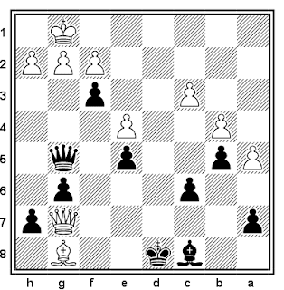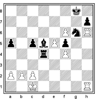 Wit behoeft niets anders te doen dan zijn koning naar g7 te brengen (Pe8+, Kf8) en zijn paard naar g5, waarna zwart praktisch in tempodwang komt te verkeren.