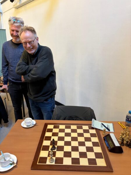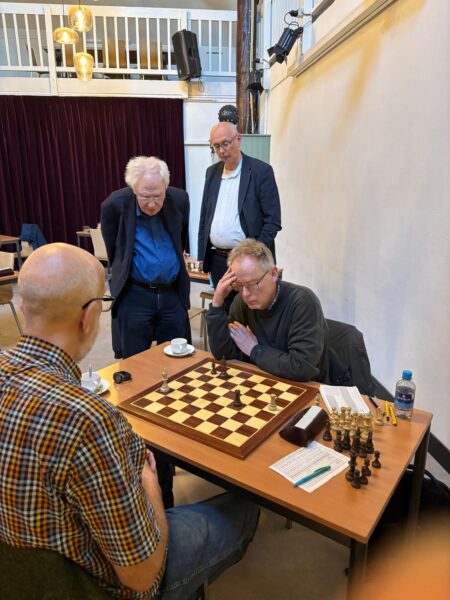 Anders (met zwart aan bord 1) had nog een interessant eindspel. Wanneer er geen fouten zouden worden gemaakt, is het remise. Anders koos ervoor om door te spelen. Hieronder enkele foto’s.
