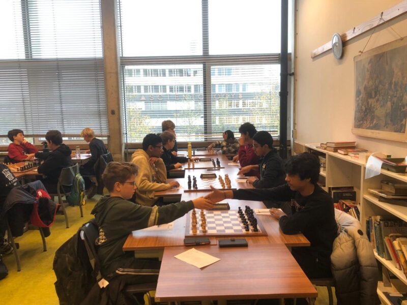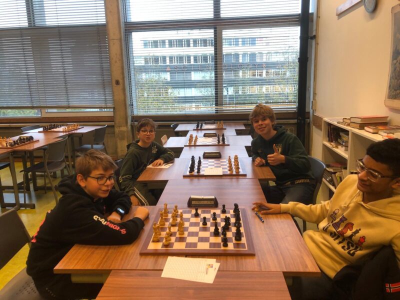 We begonnen de dag als koploper (enige team met 8 matchpunten), maar Zukertort had meer bordpunten dan wij. Het zou dus een grote opgave zijn om dit team te verslaan. Toch gingen Bram, Theo, Pranav en Daan optimistisch de strijd aan. Het liep lang aardig gelijk op.