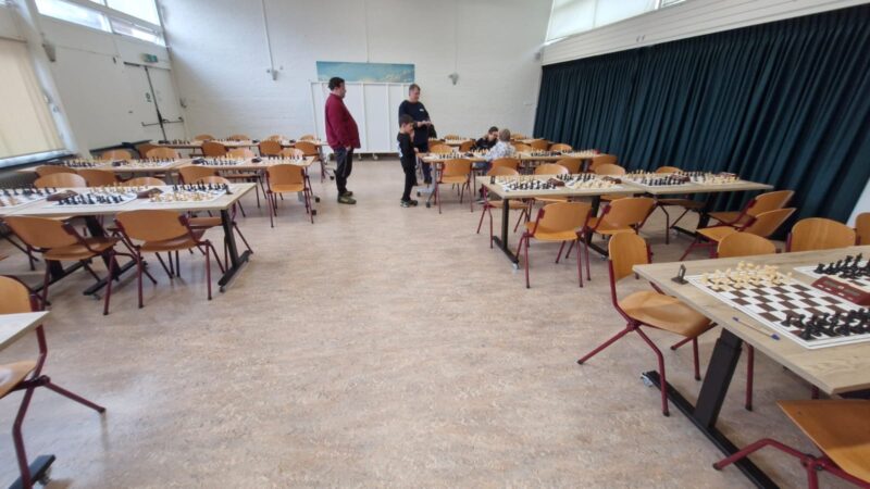 Niet alleen complimenten voor de spelers, maar ook voor de begeleidende ouders. Het is hun gelukt de spelers ’s ochtends in Leiden (!) met een geweldige focus achter het bord te laten plaatsnemen. Tegenstander in ronde 1 was namelijk het zeer sterke ESV 1 uit Eindhoven. ESV 1 zou uiteindelijk 4e van Nederland worden en ook latere tegenstander ESV 2 eindigde in de top 10.